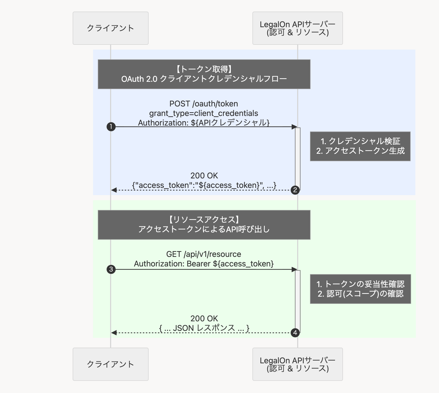 アクセストークンは OAuth 2.0 の Client Credentials Flow を用いて取得します。